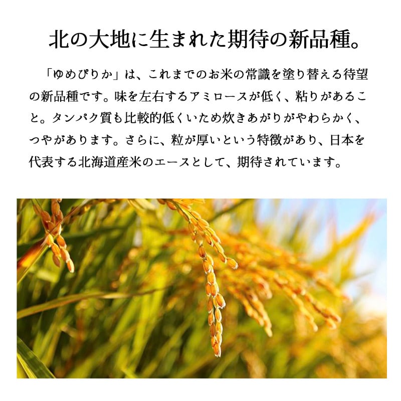 ゆめぴりかはアミロースが低く粘りがあり、タンパク質も比較的低くいため、炊きあがりがやわらかくツヤがあります。「日本穀物検定協会」が発表した食味ランキングによると、「ゆめぴりか」は「ななつぼし」とともに、最高位の「特A」と評価されました。また、ANA国際線のファーストクラス機内食として採用されるなどでも注目されています。「コシヒカリ」「あきたこまち」を祖先に持ち、そこに北海道の銘柄米「おぼろづき」の遺伝子を掛け合わせるなど、美味しさの遺伝子を受け継ぐ次世代のお米「ゆめぴりか」。是非一度お試しください。